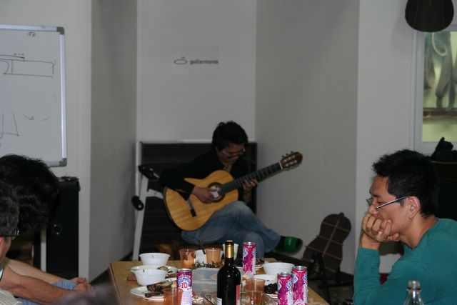 연주보다 와인에 관심이 많은 오모씨님을 앞에두고 기타리스트 홍상기님의 연주가 있습니다.