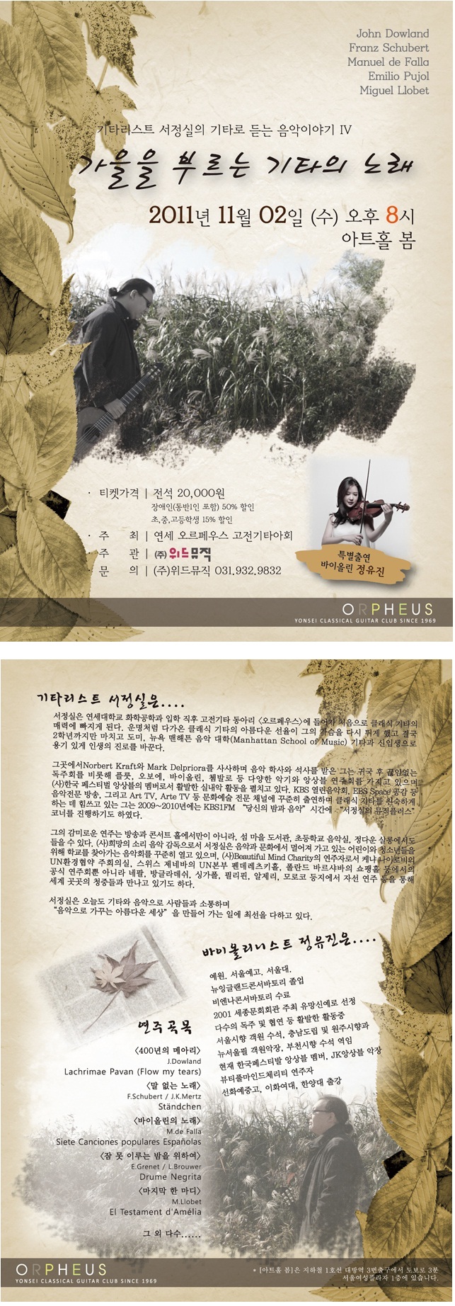 11/2 제 3회 기타리스트 서정실 초청연주회-가을을 부르는 기타의노래