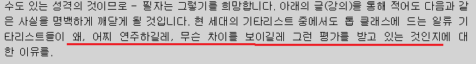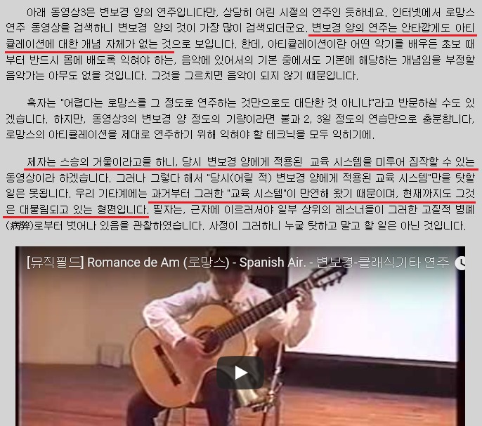 우리 주변에 만연해 있는 "19세기식 기타(guitar) 교육 시스템"의 탓으로 돌리시고 있네요.