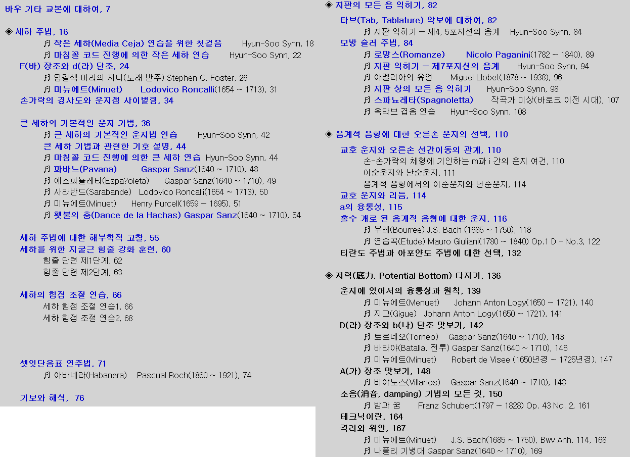 읽어 보실 수 있습니다. 그리고 <바우기타교본>의 내용은 ( http://www.musicnlife.com/books/b09bahwoo.htm#차림표 )를