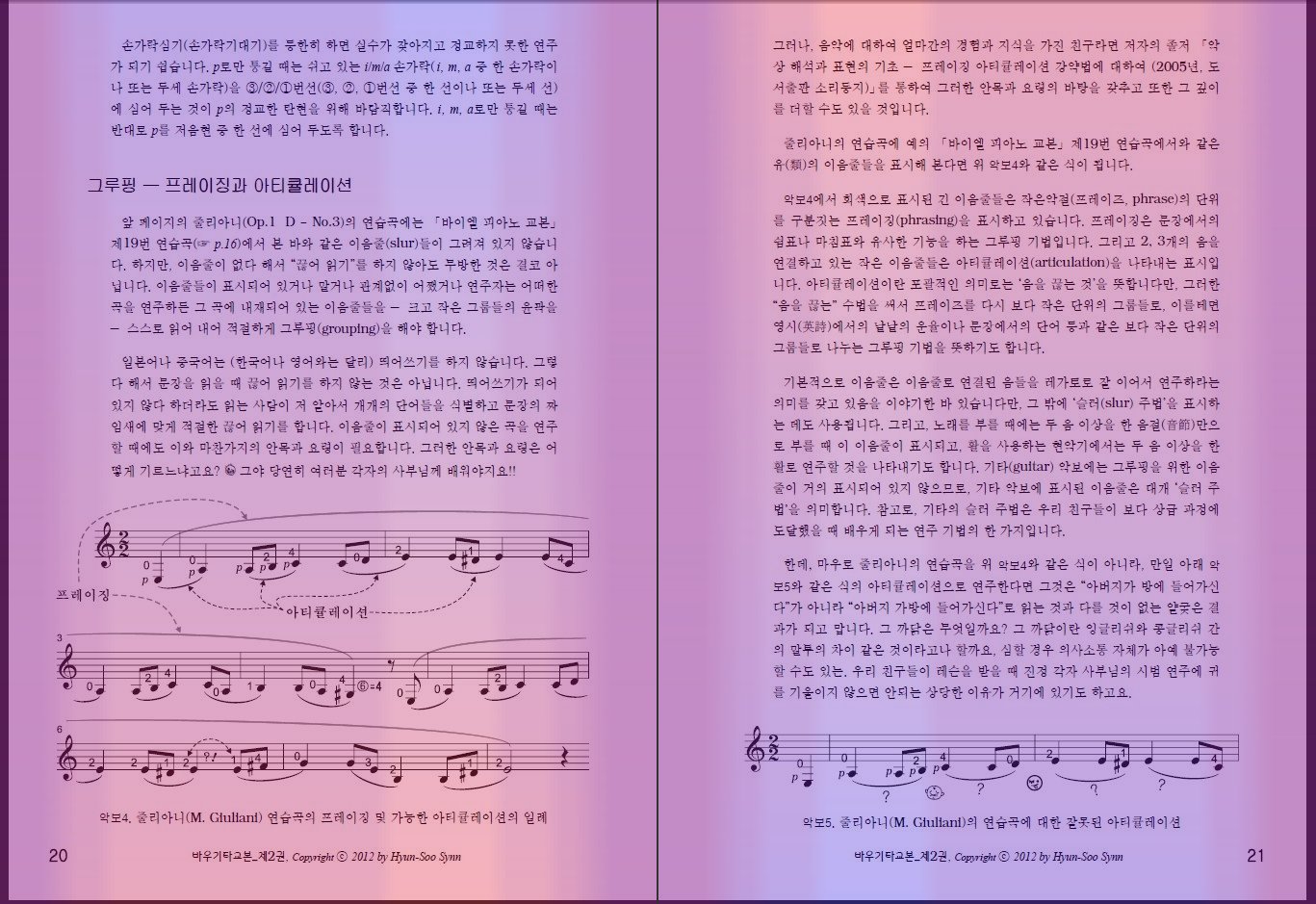 "바우기타교본... 2권에만 있는... 레가토...비법이 적혀있는 부분입니다....음악에 대한 노하우로 가득할줄 알았지만