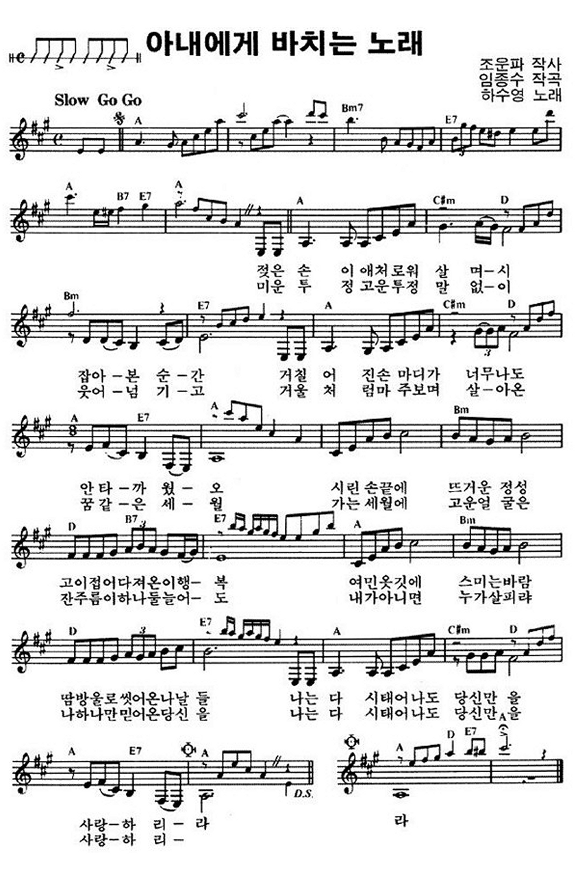 예전에 아내에게 많이 불러주었던 노래인데 감회가 새롭습니다. -