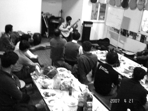 돌아가면서 하우저도 쳐보고, 분위기가 무르익자 기타 두루치기를 했어요. 정성민님이 늦게 오셔서 손도 안풀고 멋진 곳을 연주해주셨죠...^^