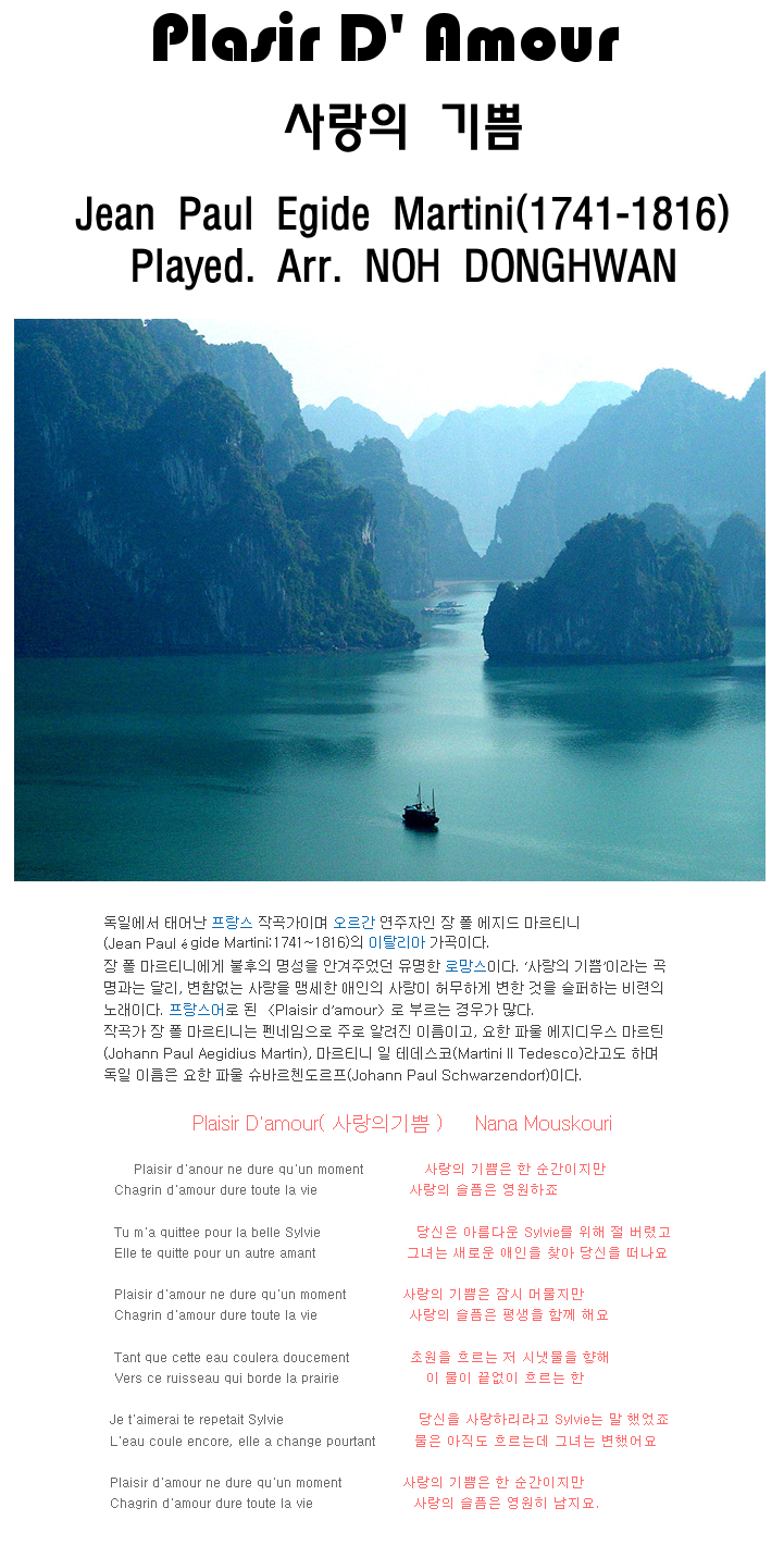 노 동환님의 이 편곡으로 이태리어 가사를 붙여 노래를 해 보았으면 하는 욕심이