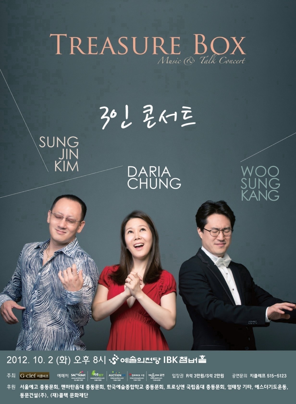 2012년 10월 2일 (화) 오후 8시 TREASURE BOX Music & Talk 3인 콘서트 (김성진,정지영,강우성) 예술의전당 IBK챔버홀