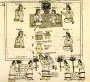 | <그림19> 가운데 사람 얼굴을 한 태양은 태양신을 상징한다. 점쟁이가 들고 있는 것이 《토날보왈리(신성한 날을 보아서)》라는 책임을 나타낸다. 점쟁이 얼굴 앞에 있는 짧은 지팡이 같은 그림은 ‘굽어진 혀’를 상징하는 것으로서 ‘말한다’는 기호이다. 즉 점쟁이가 사주풀이를 이야기해 주고 있다. ‘말한다’는 이 기호는 경주의 신라시대 고분인 천마총의 천마 입 앞에도 그려져 있다. |