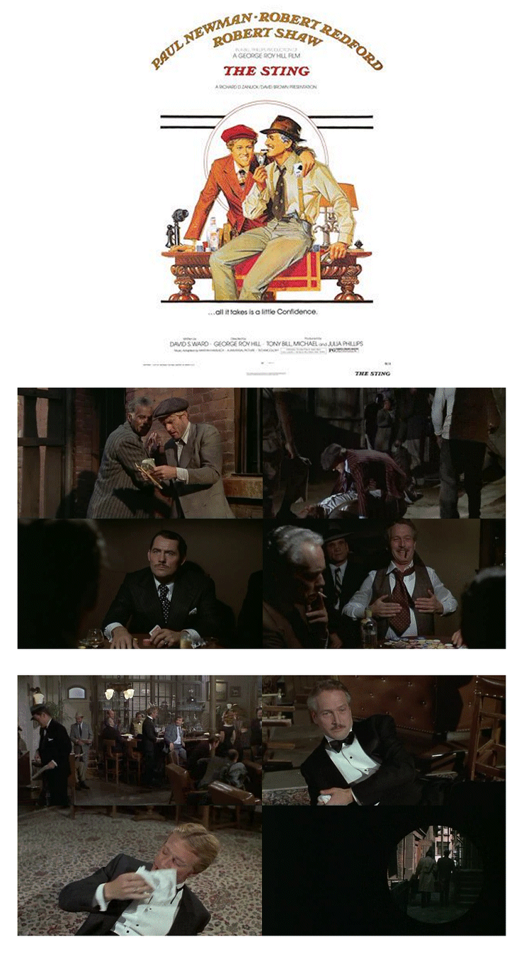로네건이 시카고로 온다는 정보를 입수한 곤돌프는 그의 애인 빌리와 함께 승객으로 가장해 로네건이 탄 열차에 오른다. 로네건은 열차 안에서 도박판을 벌이곤 했는데, 곤돌프가 그 판에 끼어들어 로네건으로부터 거액의 돈을 딴다. 그 사이에 후커는 곤돌프와 계획한 대로 로네건의 지갑을 훔친다. 후커는 이를 빌미로 로네건에게 접근해 지갑을 훔친 것은 곤돌프의 사주를 받아 그랬다며 신임을 얻는다. 후커는 곤돌프의 마권 판매장에 전화로 통보되는 레이스의 승패 결과를 미리 알아내어 이긴 레이스의 마권을 몽땅 사들이면 큰돈을 벌 수 있다며 로네건을 꼬드긴다. 로네건은 처음에는 미심쩍어했지만 후커를 여러 가지로 테스트해 본 결과 믿을 만하다고 여긴다.