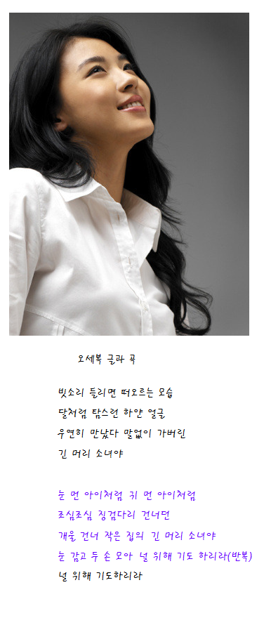 둘 다섯의 노래중에 '긴머리소녀' 는 동요 같은 느낌이 오는 곡입니다.