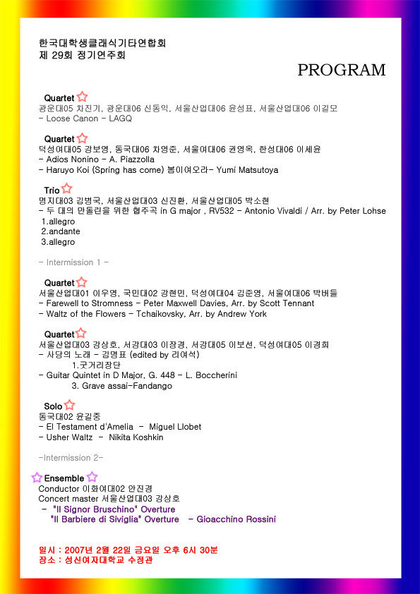 2월 22일 한국대학생클래식기타연합회 제29회 정기연주회 안내