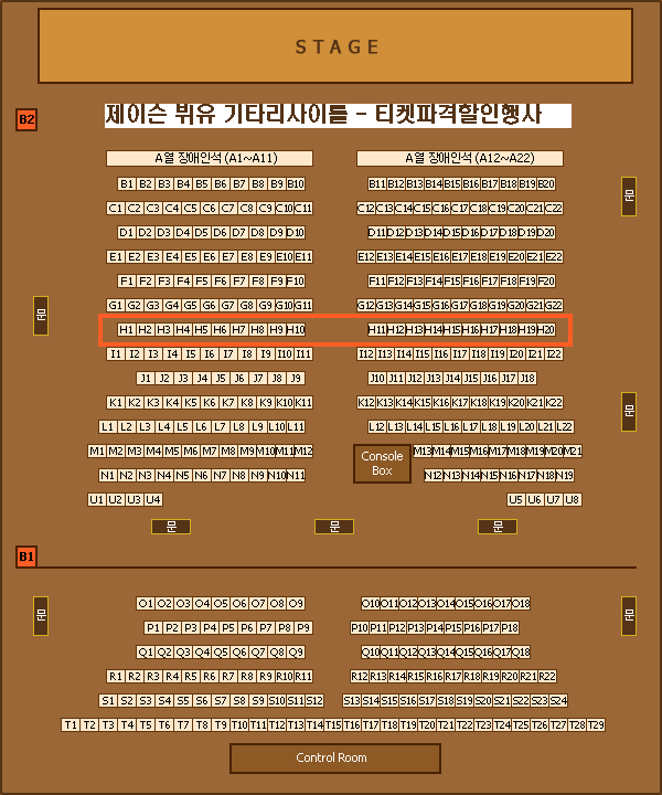 혜택2 무대 중앙 가장 좋은 자리에 좌석 실시간 배정(붉은 테두리 안쪽, 선착순 20명)