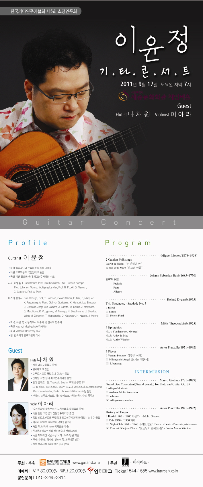 9월17일 이윤정 기타 콘서트 토요일 7시 세종문화회관 체임버홀