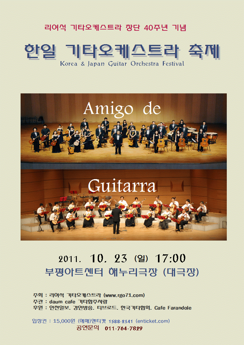 10/23 리여석기타오케스트라 창단40주년 연주회가 있습니다.