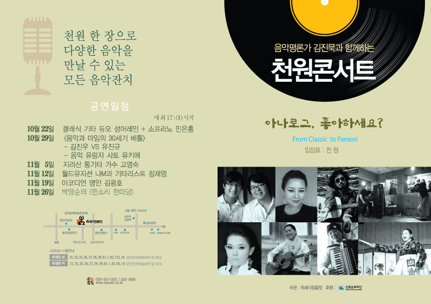 이번주 토요일부터 시작해서 매주 토요일 6주간에 걸쳐 춘천에서 천원 콘서트를