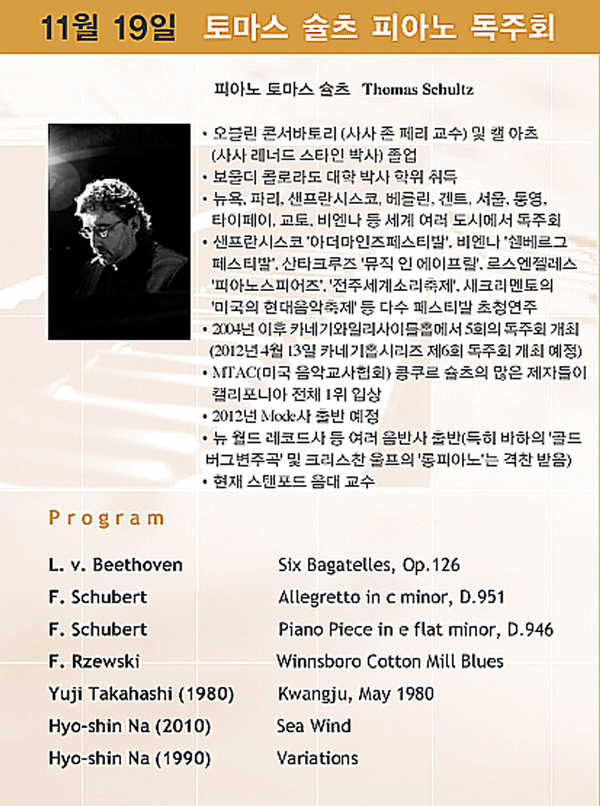 11월 19일(토) 오후 7시 30분 토마스슐츠 피아노리사이틀 @ 부암아트홀