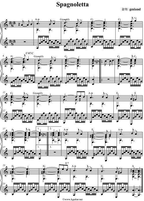 위 두 번째 악보는 예시일 뿐이므로, 아래 별첨 피날레 악보로써 멋진 리듬을 만들어보시기 바랍니다.